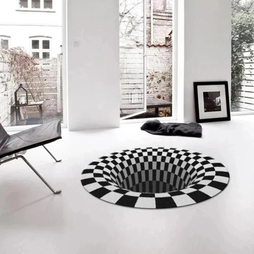 Vortex Illusion Rug 3D Trap Effect Black White GridThis 3D vortex carpet has an incomparable illusion effect! Premium 3D House Mat.