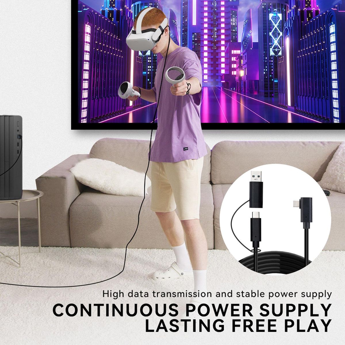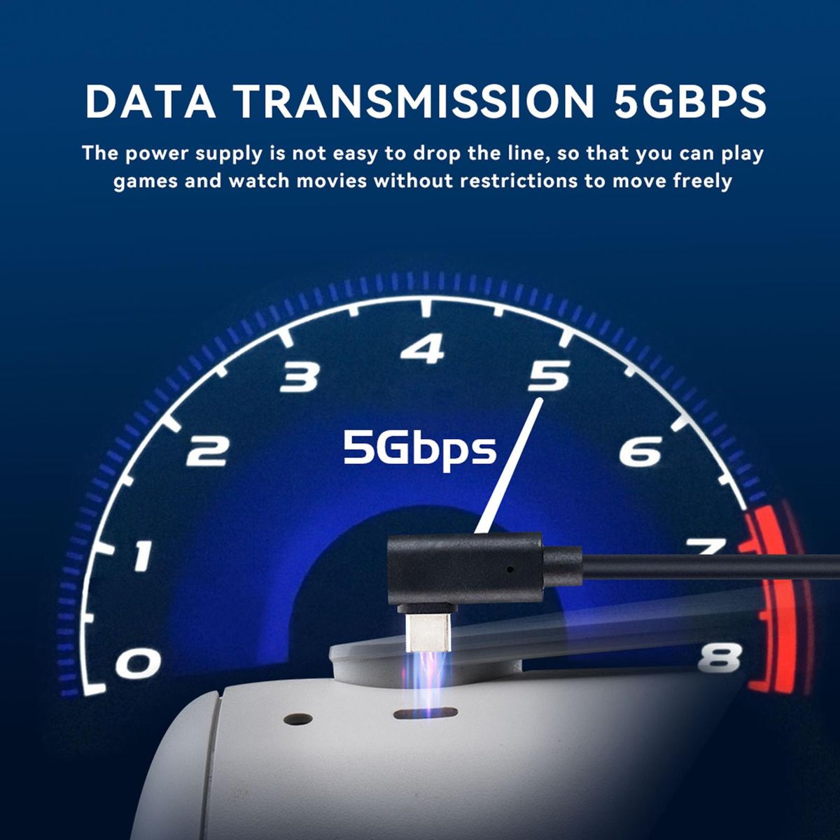 VR glasses data cable has 3A current and 5Gbps data transfer rate, which supports quick charge and fast data transmission.