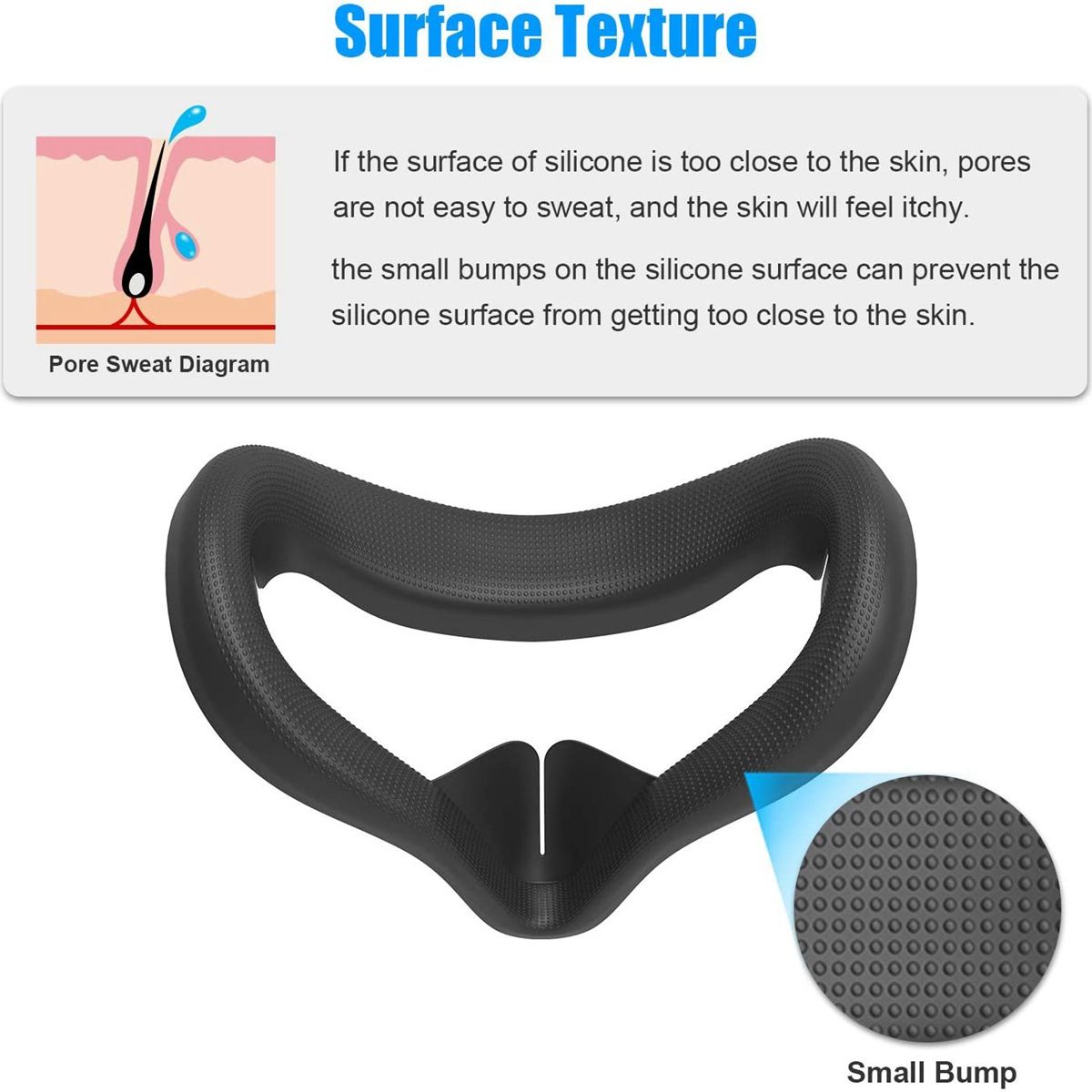 [Special Sweat Wicking Design]We made a special texture on the surface of the silicone mask, adding a lot of small bumps. These small bumps are not only beautiful, enhance the feel, and are closer to the face, but also easily drain the sweat produced by the face when playing games.