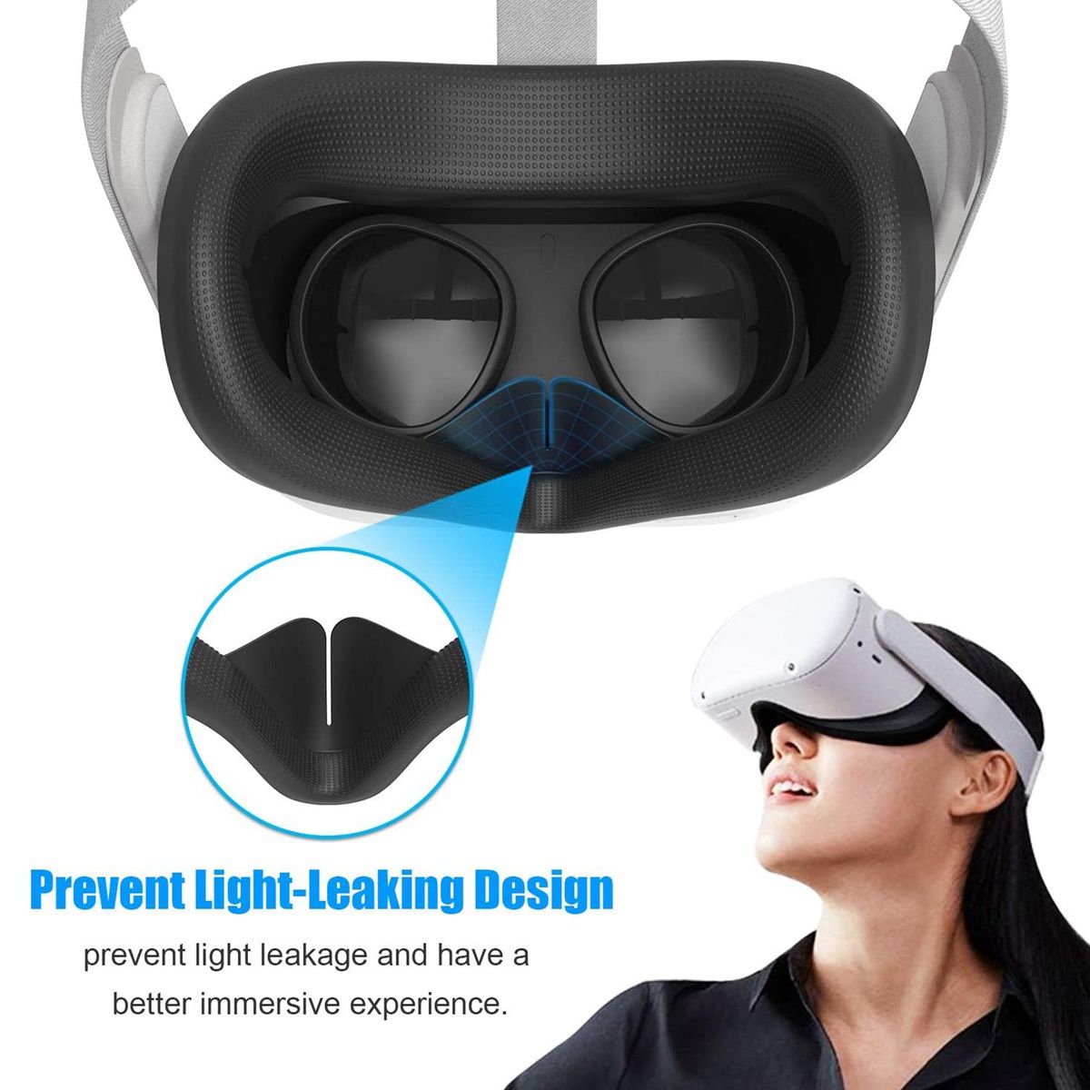 [Preventing Light-leaking & Glasses Frame not Squeezed Design]Two light-blocking sheets are added to the nose pads on the face cover to prevent light from entering, allowing you to have a better VR immersion experience. A small detail is specially designed for players wearing glasses, which will improve the comfortable sensation and game experience who wearing glasses.