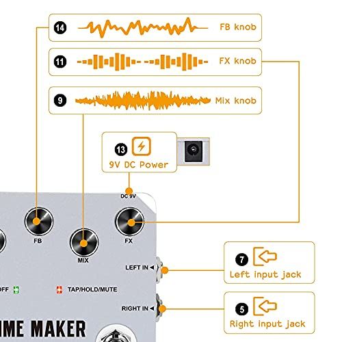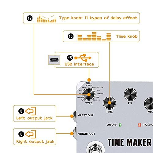 - SIMPLE OPERATIONThe Time Maker embles 11 delay effets with Tap Tempo funtion whih makes adjusting the delay time muh more Easier. From lean"Pure"delay to psyhedeli "Reverse Tape" Delay, we enhane different musial styles with different delay hoies.