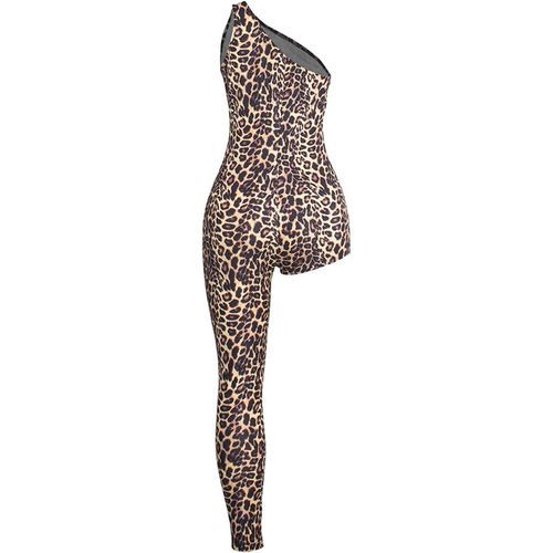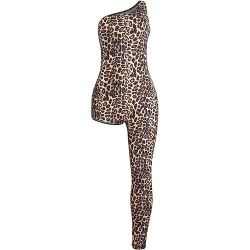 Women Leopard One Shoulder Asymmetric Long Pants Sexy Party Clubwear Jumpsuit Romper Buyer Show