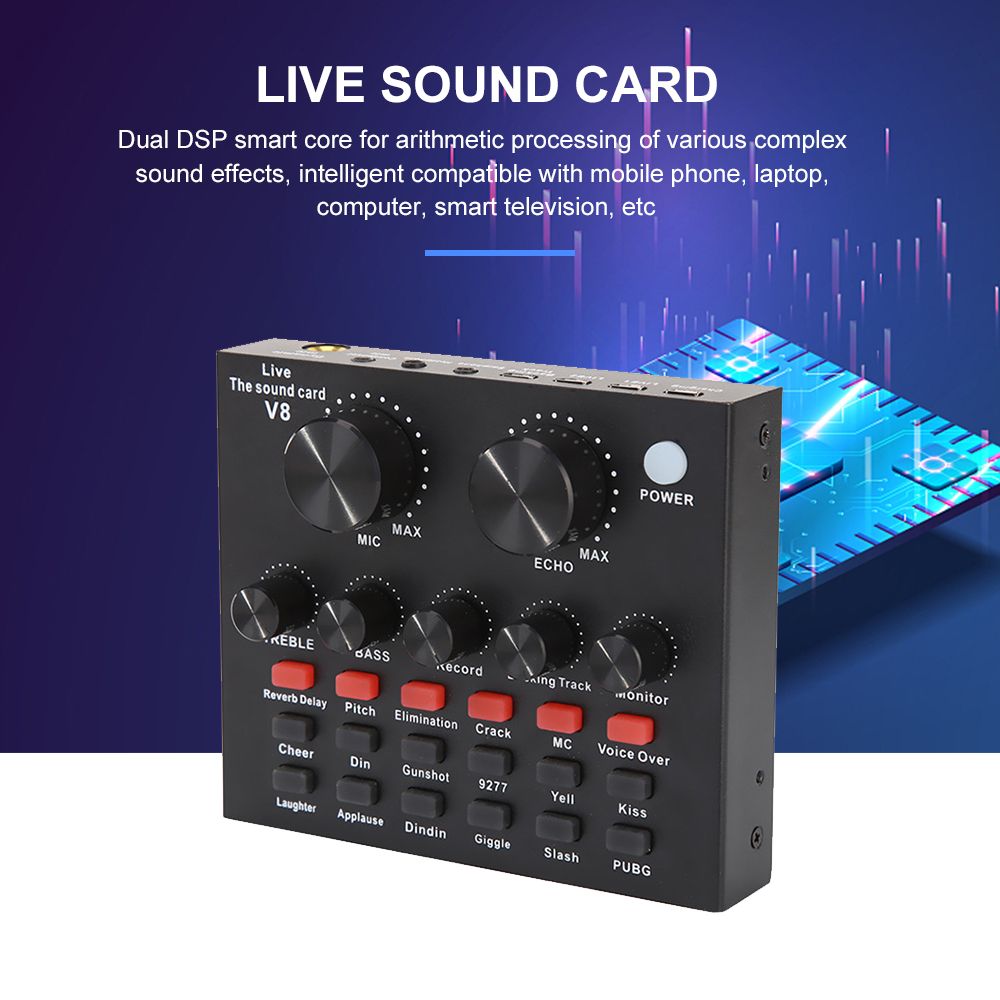 Live Sound Card: dual DSP smart core for arithmetic processing of various complex sound effects, intelligent compatible with mobile phone, laptop, computer, smart television.