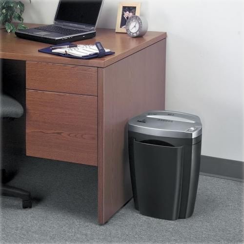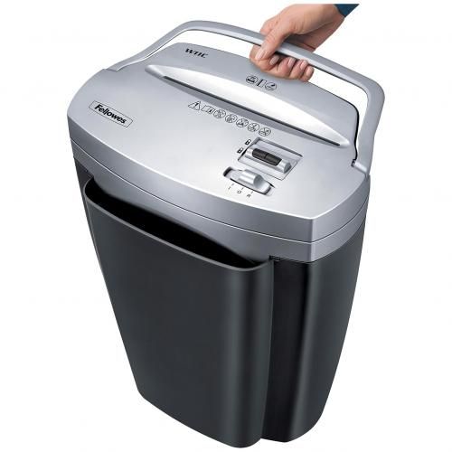 The Fellowes W-11C cross-cut paper shredder can shred 6 A4 sheets per pass into 4 x 35 mm particles (DIN P-4) for secure shredding. Run Time: Up to 3 minutes