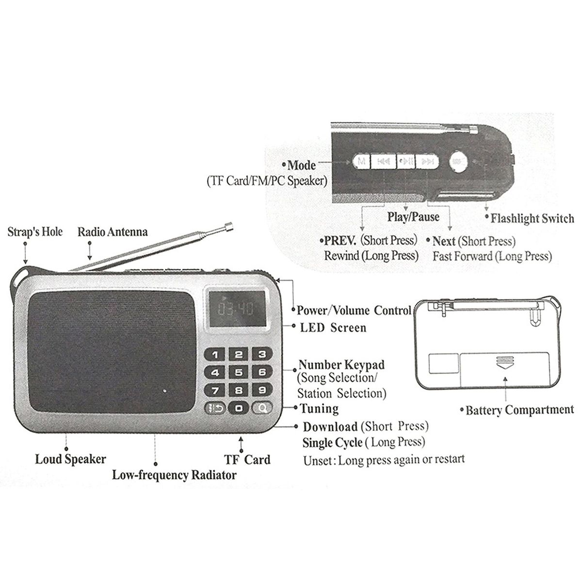 Buy W405 FM Digital Radio Portable USB Wired Computer Speaker HiFi Stereo Receiver w/ Flashlight LED Display Support TF Music Play in Nigeria