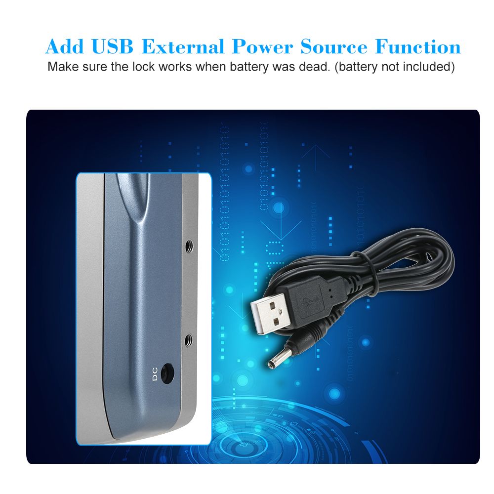 *Add USB external source function. Make sure the lock works when battery was dead (battery not included).