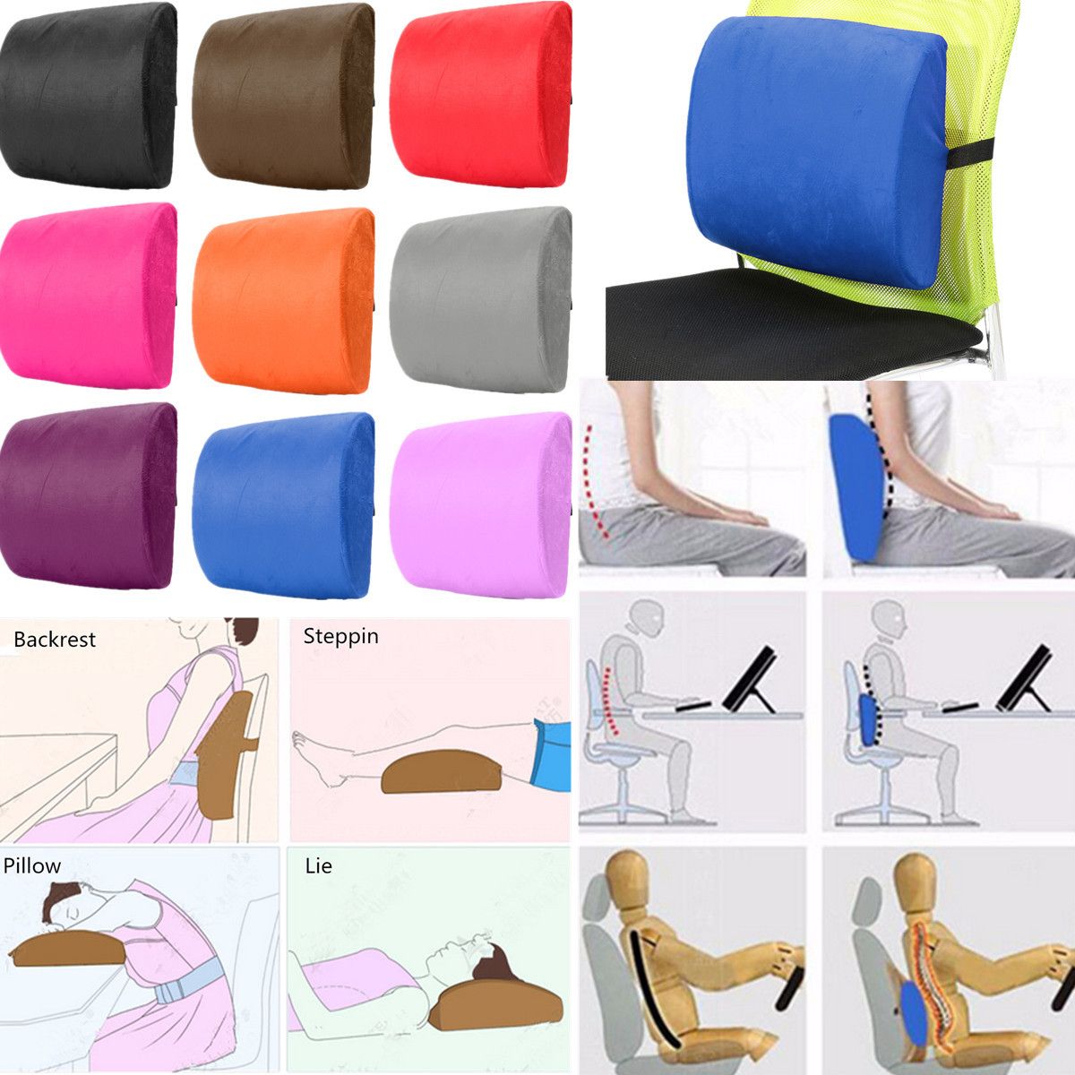 1*Waist Support Chair Waist Pillow Memory Foam Lumba