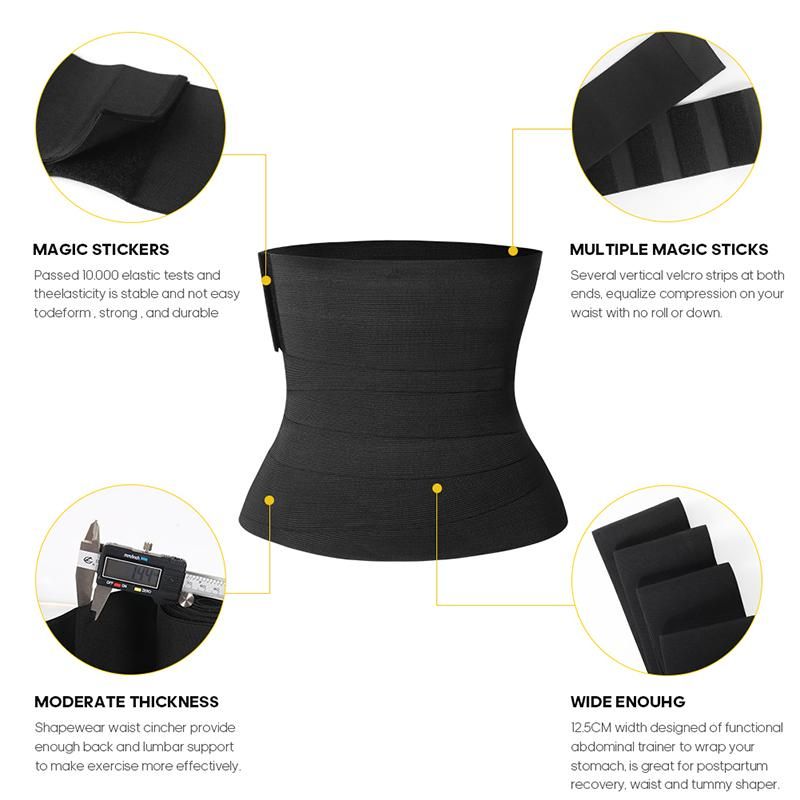 Bandage Wrap Waist Trainer: Waist snatcher support belts for women and men is long enough to wrap your belly as a waist cincher belt. Multiple vertical and side-by-side magic strips on both ends of waist wraps for stomach training band will fix at your waist to stay put with no roll or down during workout. Multiple velcro closure waist trainer for women make the waist bandage wrap provide adjustable tightness for waist trainer for men women under clothes and tighten stomach in all activities.