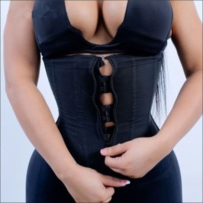 With spiral steel bones supports zipper waist trainer design and high compression.