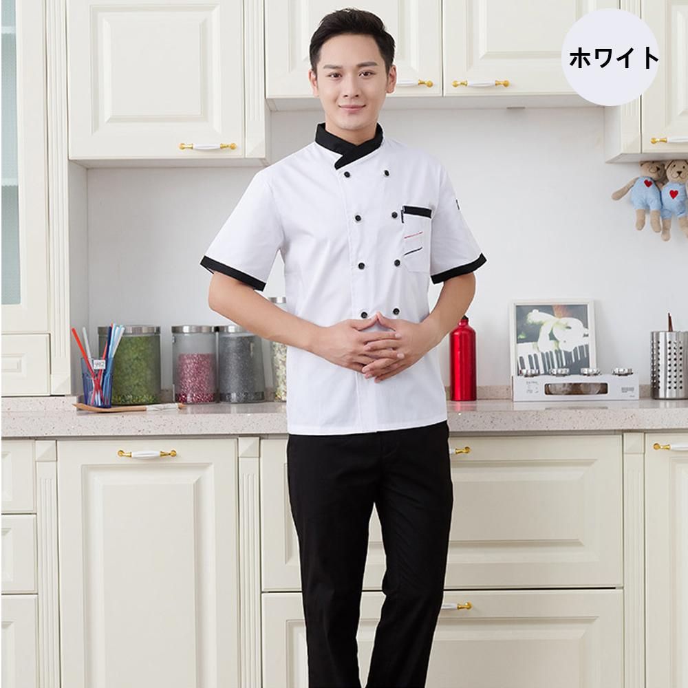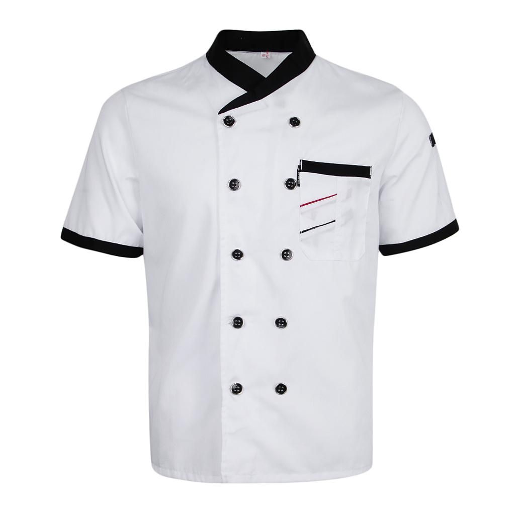 Summer short sleeve chef uniformFashion classic hotel kitchen chef jacket coat for men womenBreathable design, perfect for heat dissipation and make you feel cool.Left arm pocket, pen pocket and double breasted design, durable polyester materialGreat for waiter uniform, professional work clothes for restaurant, hotel, cafe, bakery and other cook work.