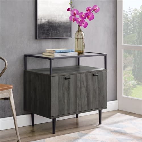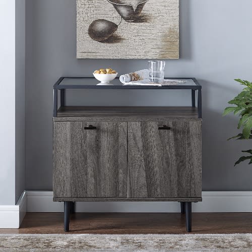 Buy Walker Edison Modern Glass Top 2-door Side Table - Slate Grey in Nigeria