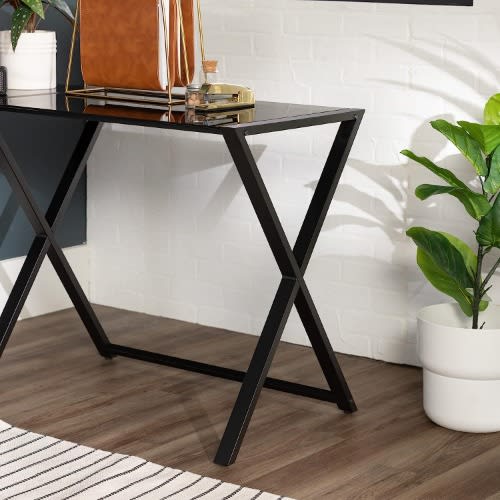 Buy Walker Edison Modern X-Frame Glass & Metal L-Shaped Corner Computer Desk - 51'' - Black in Nigeria