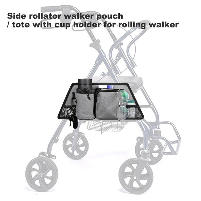 Walker Side Bags;Rollator Walker Bag Side Storage Pouch Frame Bag;Portable Pocket Easy Access Walking Wheels Mesh;Side Walking Organizer Tote Bag Cup Holder Gray;Disabled Elderly Folding Walker Attachment Basket;Walker Bag Pouch Hand Free Storage Bag Waterproof