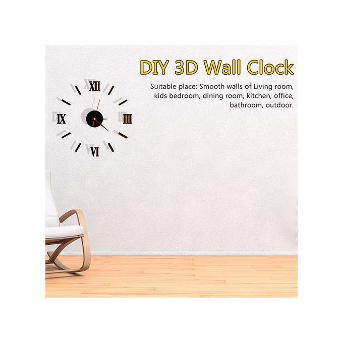 Modern DIY Acrylic Wall Clock 3D Black Number Wall Art Home Office Mural DecorDescription:100% and high quality.Material: plexiglass,AcrylicColor:BlackStyle:ModernPower Source:Battery PoweredThe wall clock is 3D effectBattery: 1x AA (1.5V) battery (Not include)Diameter:40cm,adjustableThickness:2-3mm Feature:The clock finishing size is depends on your preference to decorate your wallDIY distance from different digits, and DIY shape of the digitsEasy to install and remove the stickerIt is self-adhesive, water & steam resistant, Non toxic and safety for the childrenSilent sweeping movement, mute movement,Silent Clock give you a quiet nightThe decals can be applied on all smooth surfaces,such as Walls, Doors, Windows, Closets, Plastic, Metal, Tiles etcUsage: For gifts and crafts,business gifts,holiday gifts,promotion gifts,home decorationSuitable place: Smooth walls of Living room, kids bedroom, dining room, kitchen, office, bathroom, outdoor Package Includes:1 x Modern DIY Wall Clock (not include batteries or any accessories.) Notice:1.The real color of the item may be slightly different from the pictures shown on website caused by many factors such as brightness of your monitor and light brightness.2.Please allow slight deviation for the measurement data.3.Please allow 1-3cm error.If you have any questions, please contact us. Wish you have a happy shopping time!