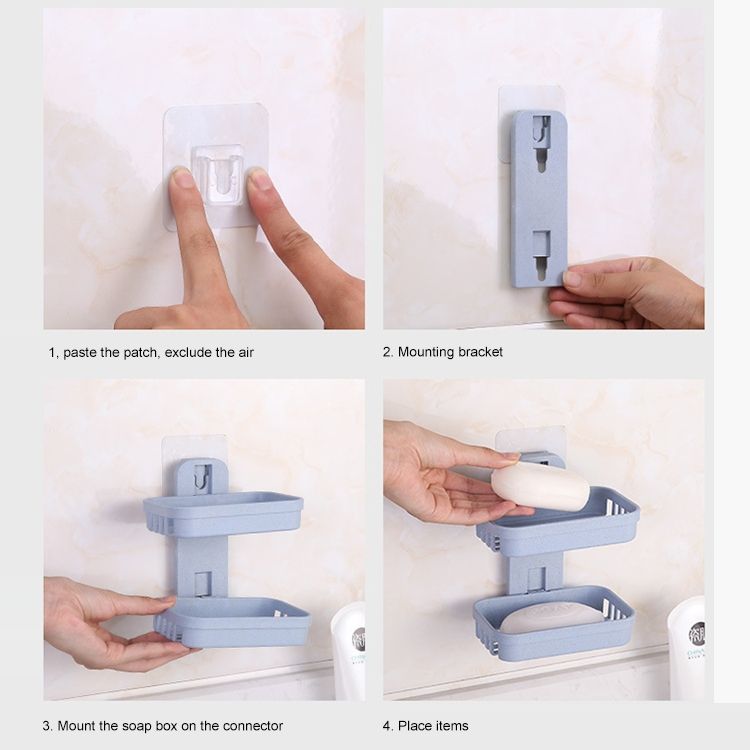 Wall Hanging Traceless Double-deck PP Soap Holder Bathroom Storage Shelf (Beige)