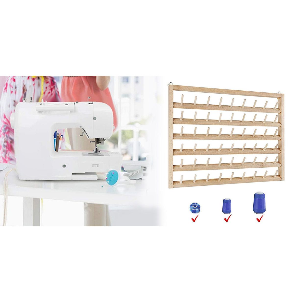 Made of superior quality pine which makes it sturdy and durable.Multi-spool thread rack for holding sewing,could work well to organize many small or medium thread spools and cones.The simple design make it easy to match with any room decor.Can be installed on the wall or independently on the desk.Saves a lot of space for you and makes your sewing area immediately super orderly and feels great.