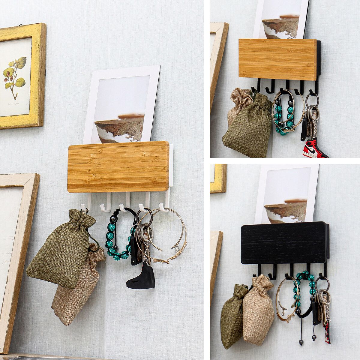 ?【Quality】 - Made of beech wood and alloy plastics slot and pc hook. It is strong but a little light, wood grains are visible and detailed, natural is also a simple addition to any decor style.