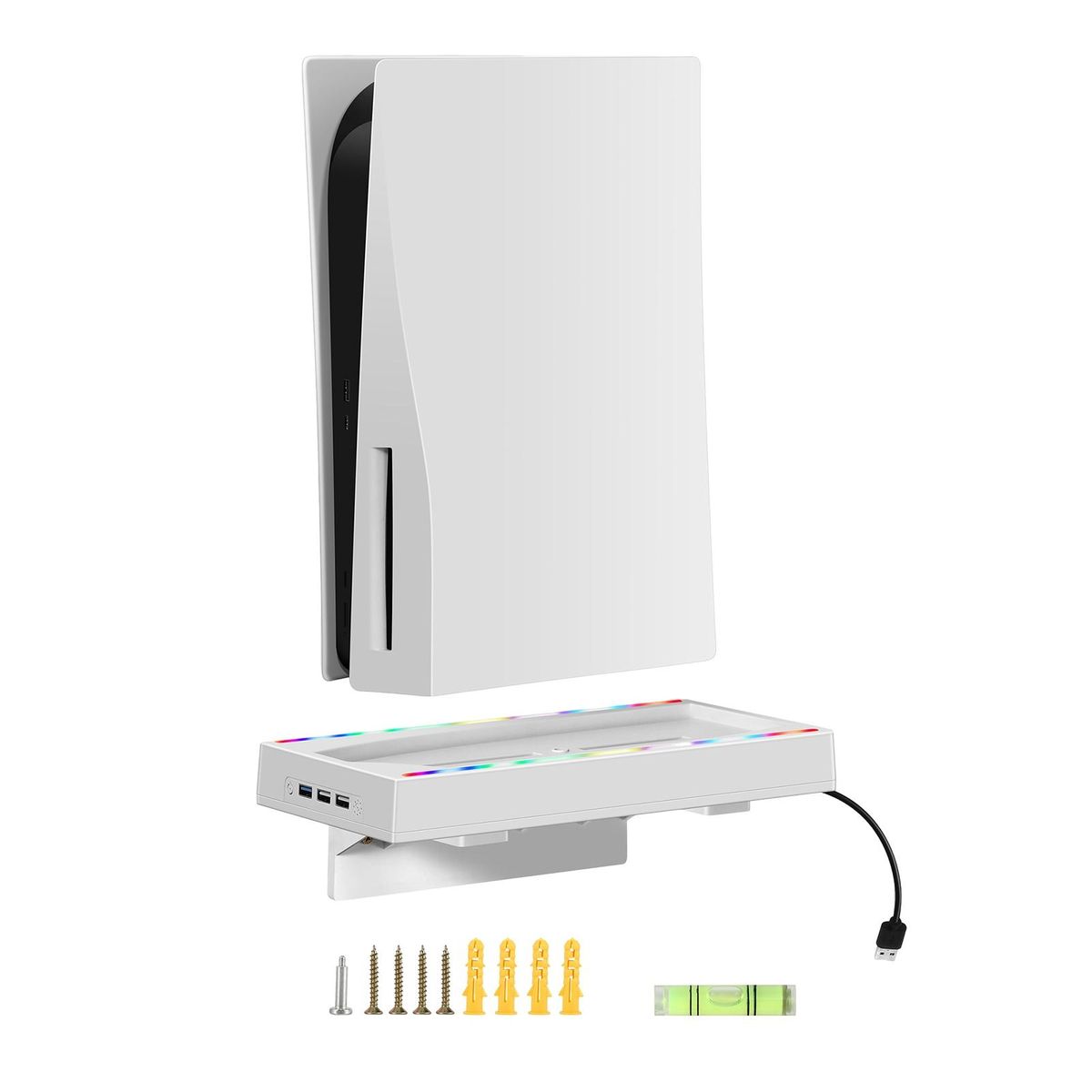 Our versatile wall bracket with led light strips, designed to elevate your gaming experience to new heights! crafted from durable abs material, this wall-mounted bracket offers a secure and convenient storage solution for your console. .