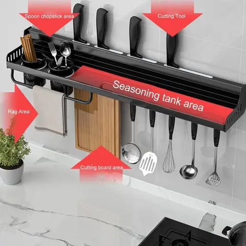 Wall Mounted Aluminum Kitchen Rack Kitchen Organization Tool
