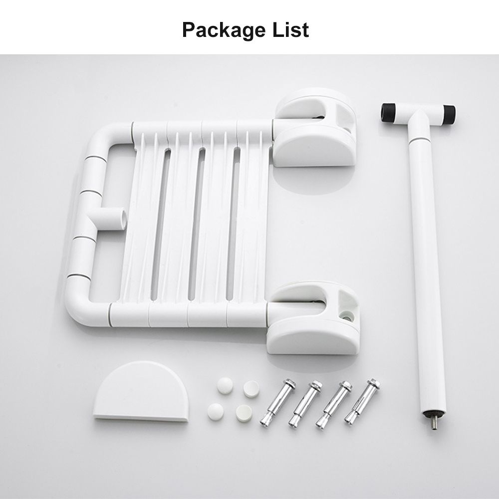 Wall mounted style, easy to install with screw set. Foldable design, space-saving in the bathroom.