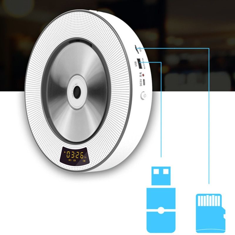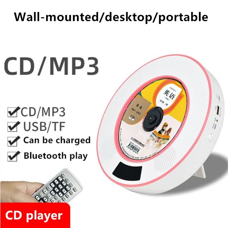 1X Wall Mounted CD Player Desktop Bluetooth 2 Speaker TF Card U Disk MP3 Portable Walkman Disc Machine Remote Sound LED Display USB