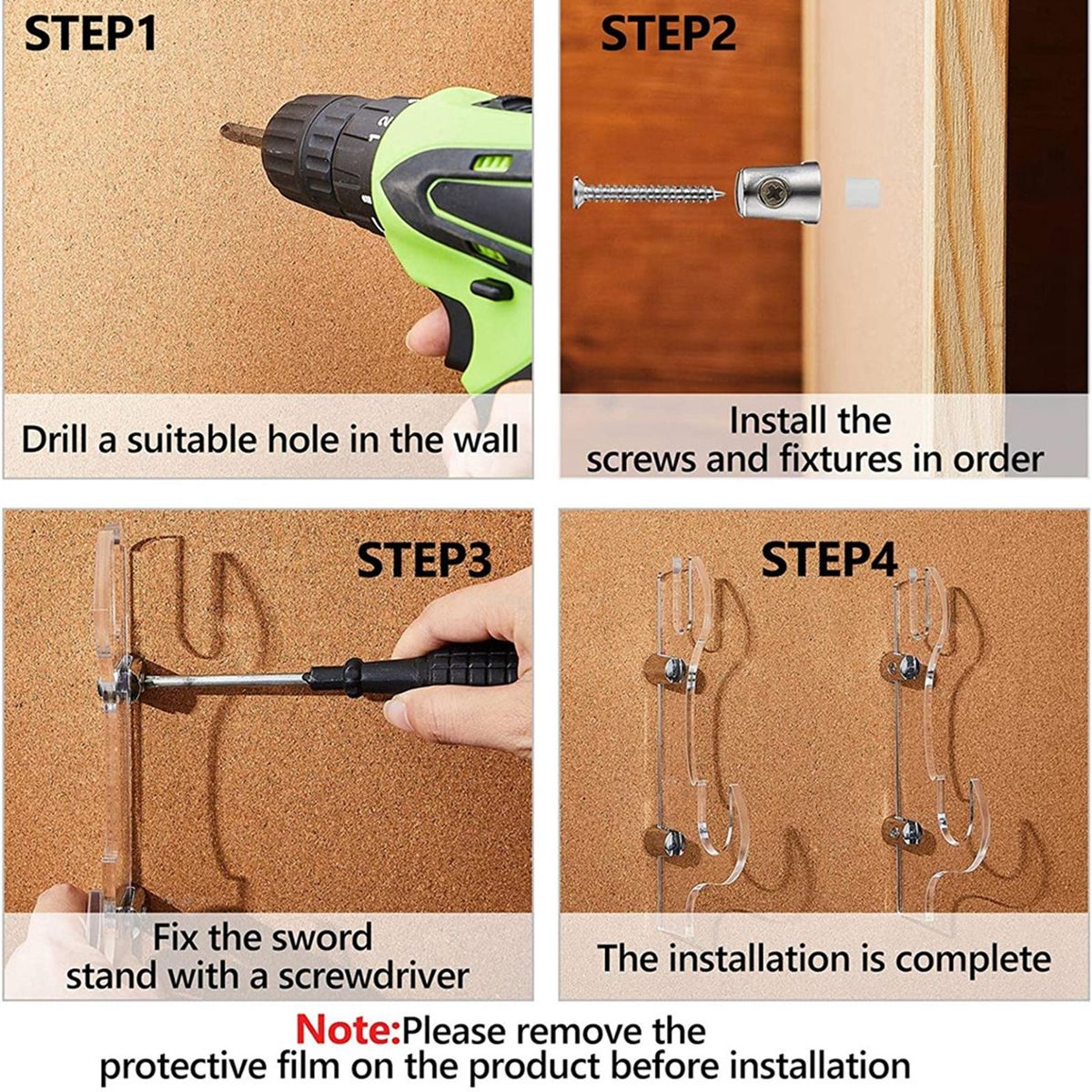 Two racks (one pair) to hold for one lightsaber.(not included lightsaber)Screws and expansion tube are included. single piece size: 15x9cm/5.91x3.54inch, thickness: 5mmAcrylic material; the rack can show off your lightsaber.Horizontally- The lightsaber can be displayed on the wall.Not on the desk. Not vertically.Peel off the white film on both sides of acrylic,the film is used to protect the clear acrylic from scratches.