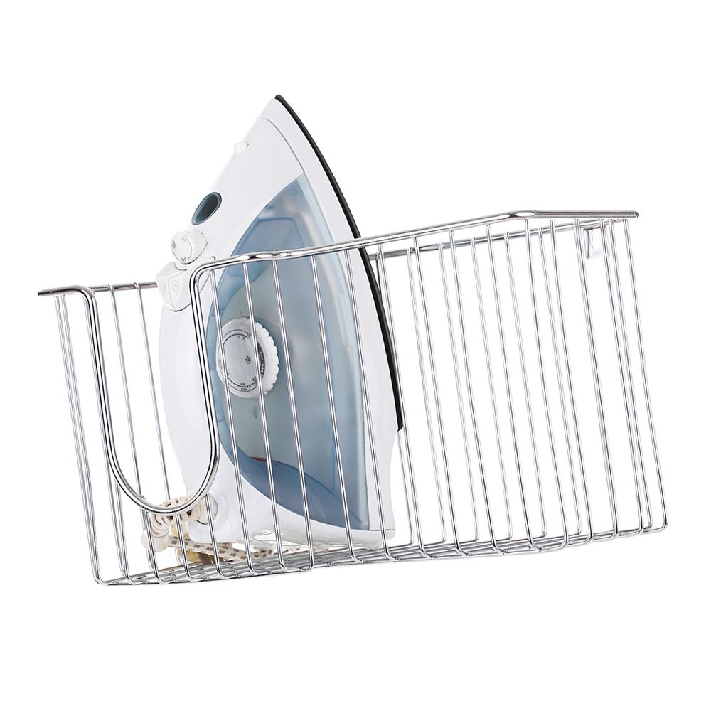 Multifunctional one, which includes Basket for a iron, spray bottles, etc. And the Ironing Board Rack with five hooks underneath for hanging clothes.