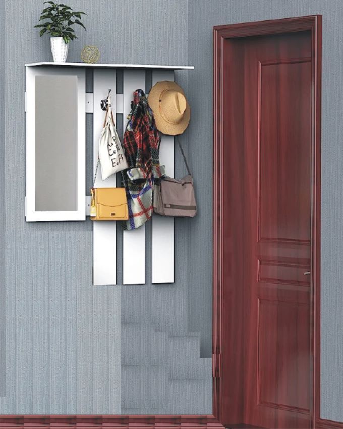 This space-saving, high utility interior decorative wall-mounted mirror coat jacket bag hat rack hanger are fitted with a clear shatter-proof mirror as well as 6 double hooks.
