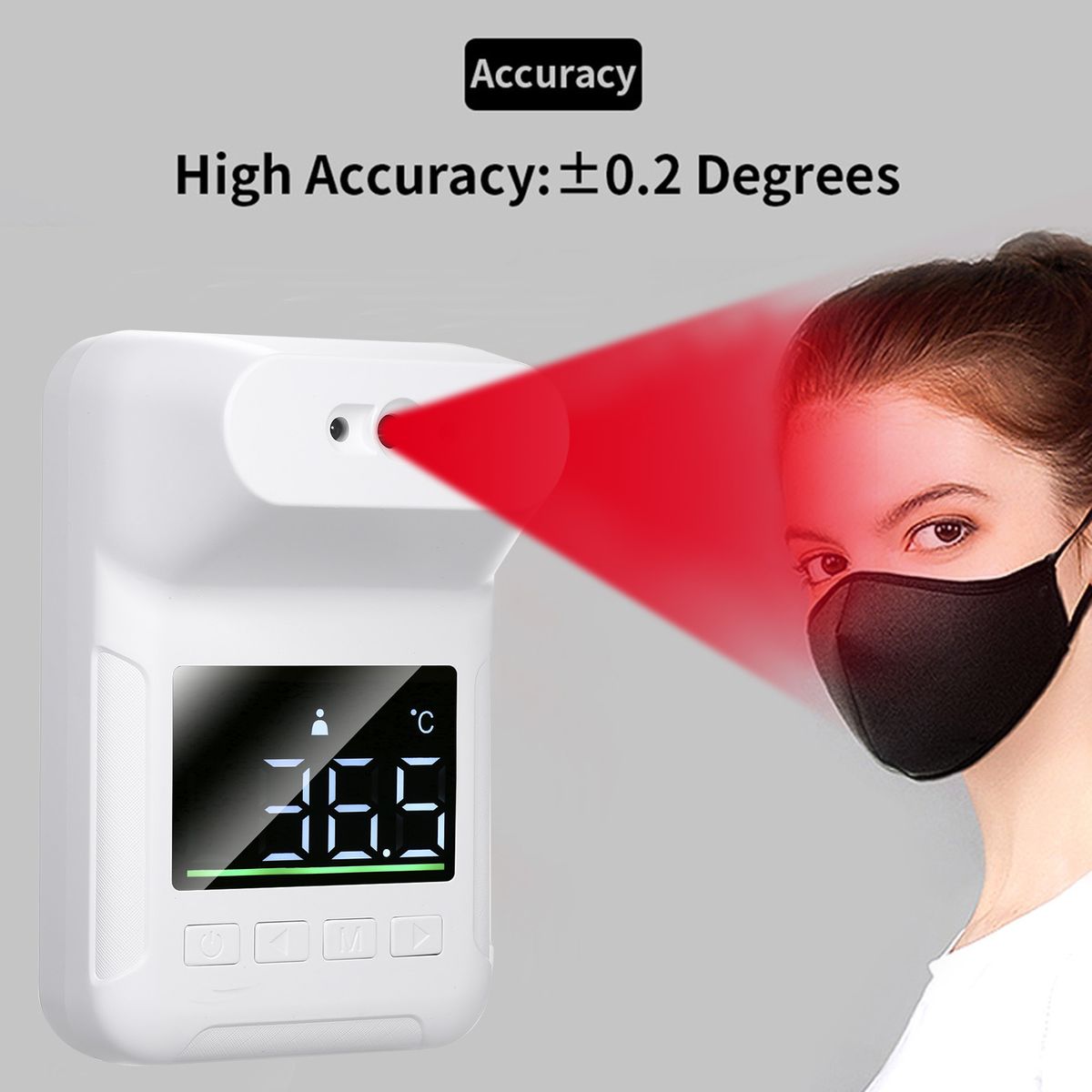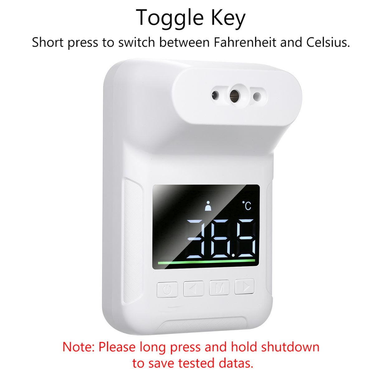The wall-mount non-contact infrared thermometer detects temperature within 1cm-10cm/1-4 inch distance from forehead,more healthy and safe.