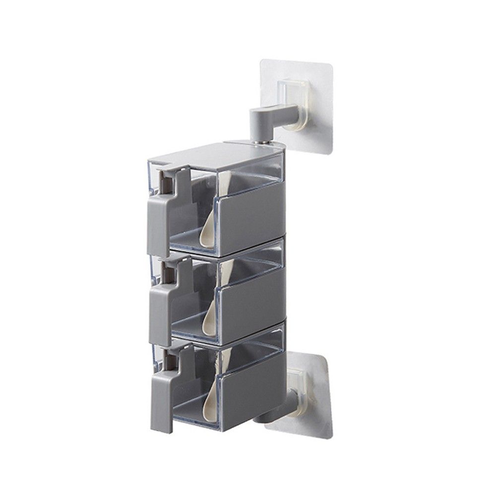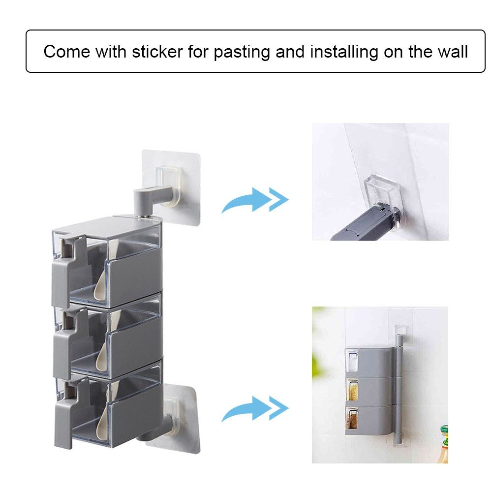 This wall-mounted seasoning rack with 3 compartments and 3 serving spoons can organize different seasoning, protecting all seasoning box and the cover can be easily open and keep the spice dry. It can be easily and quickly installed with strong adhesive plates, which is damage-free to your wall.
