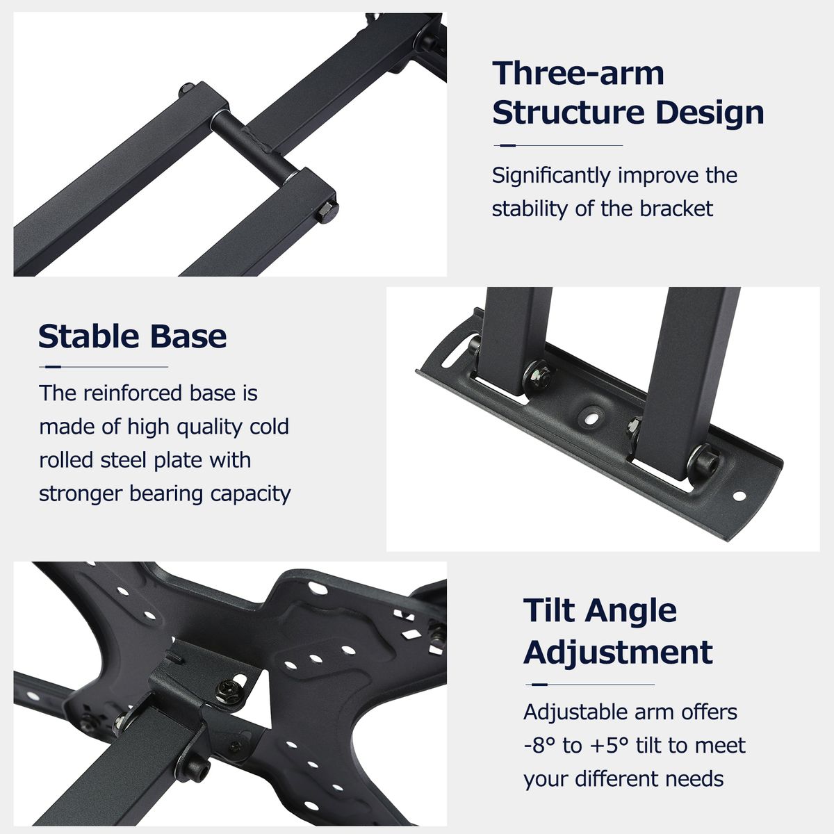 Compatible with 100mm*100mm/200mm*100mm/200mm*200mm/300mm*300mm/400mm*200mm/400mm*400mm size, suitable for 14-55 inch sizes TV/monitor.