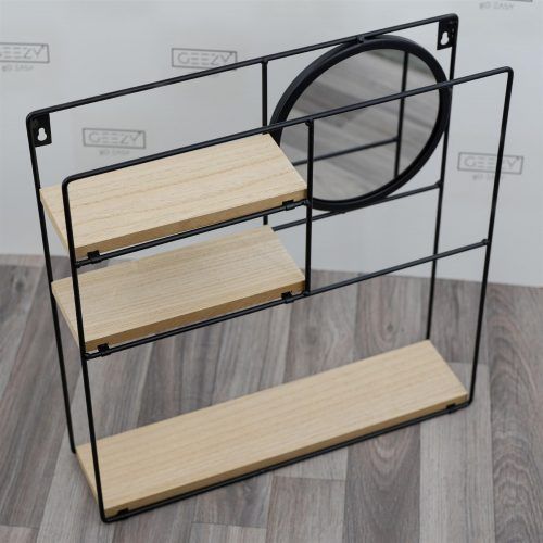 - Features: Metal Rack, Wall Hanging, Floating Shelf, Wooden Shelves, With Mirrors