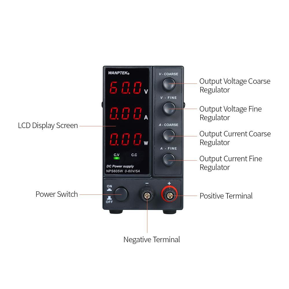 Buy wanptek NPS605W 0-60V 0-5A Switching DC Power Supply 3 Digits Display LED High Precision Adjustable Mini Power Supply AC 115V/230V 50/60Hz Voltage & Current Regulated Dual Output in Nigeria