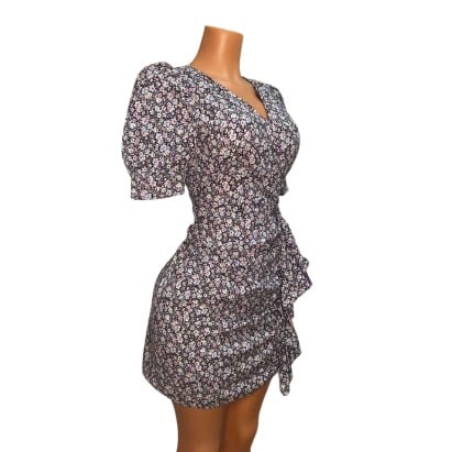 Elevate your wardrobe with this stunning Women's Floral Wrap Dress. Crafted with a soft and comfortable fabric, this dress features a charming floral print that adds a touch of elegance to your everyday look. The wrap design cinches at the waist for a flattering fit, while the short sleeves and ruffle hem bring a playful yet sophisticated vibe. Perfect for both casual outings and special occasions, this dress is a versatile addition to your closet.