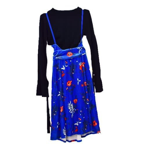 - **Design:** Floral print, wrap style, ruffle hem