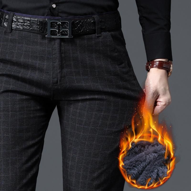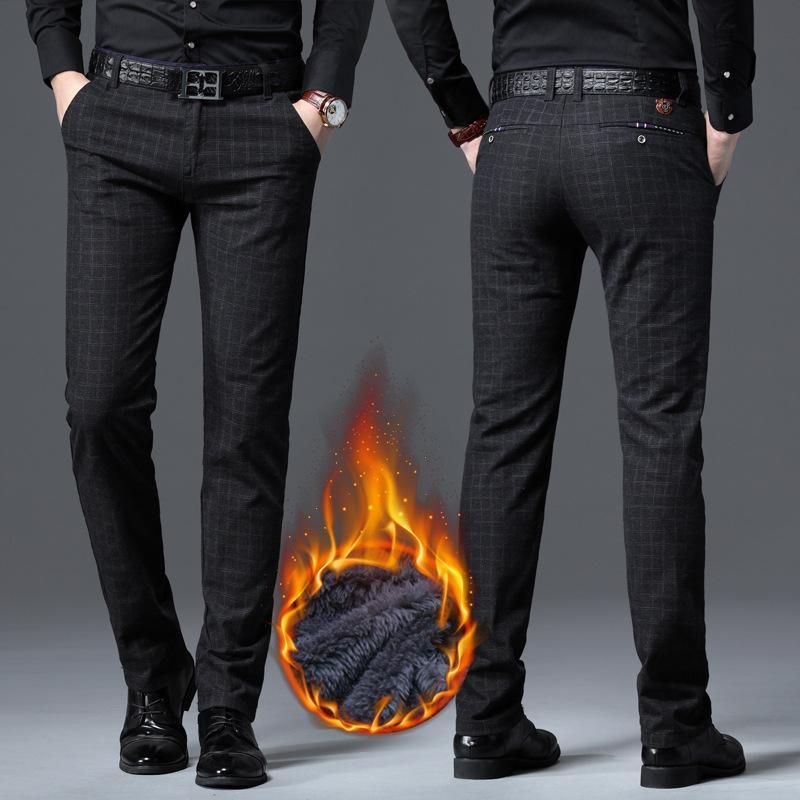 Pantalones informales calidos para hombre ropa de negocios ajustada gruesa de terciopelo color negro y azul marino invierno 2020