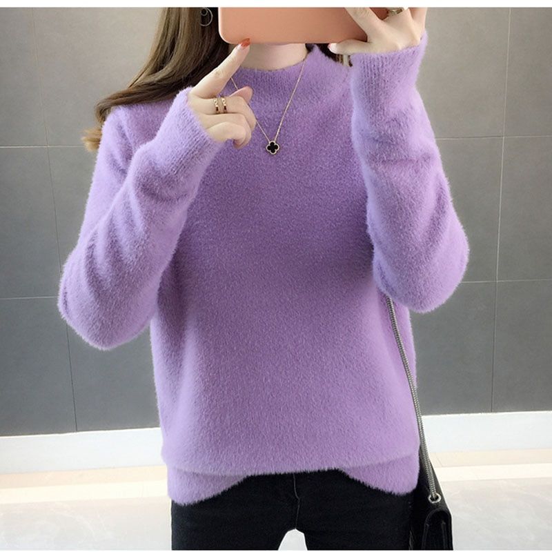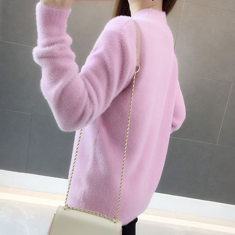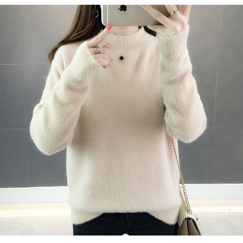 1X Warm Fall Knitted Faux Mink Fur Pullover Women Long Hair Turtle Neck Tops Ladies White Solid Color Jumper Casual Femme Pull Top