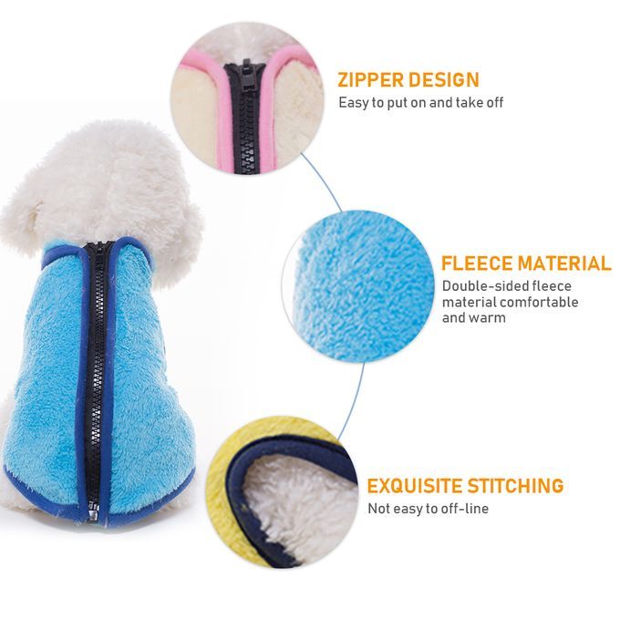 Winter is coming, your pet should change clothes, too. This fleece winter vest will be a good choice for you, very warm and stylish. High collar design, make the vest not only keep warm, but cool and stylish. Dog's parents no need worry about the difficulty of wearing clothes, zipper design makes it easy to put on and take off. Hurry to buy!