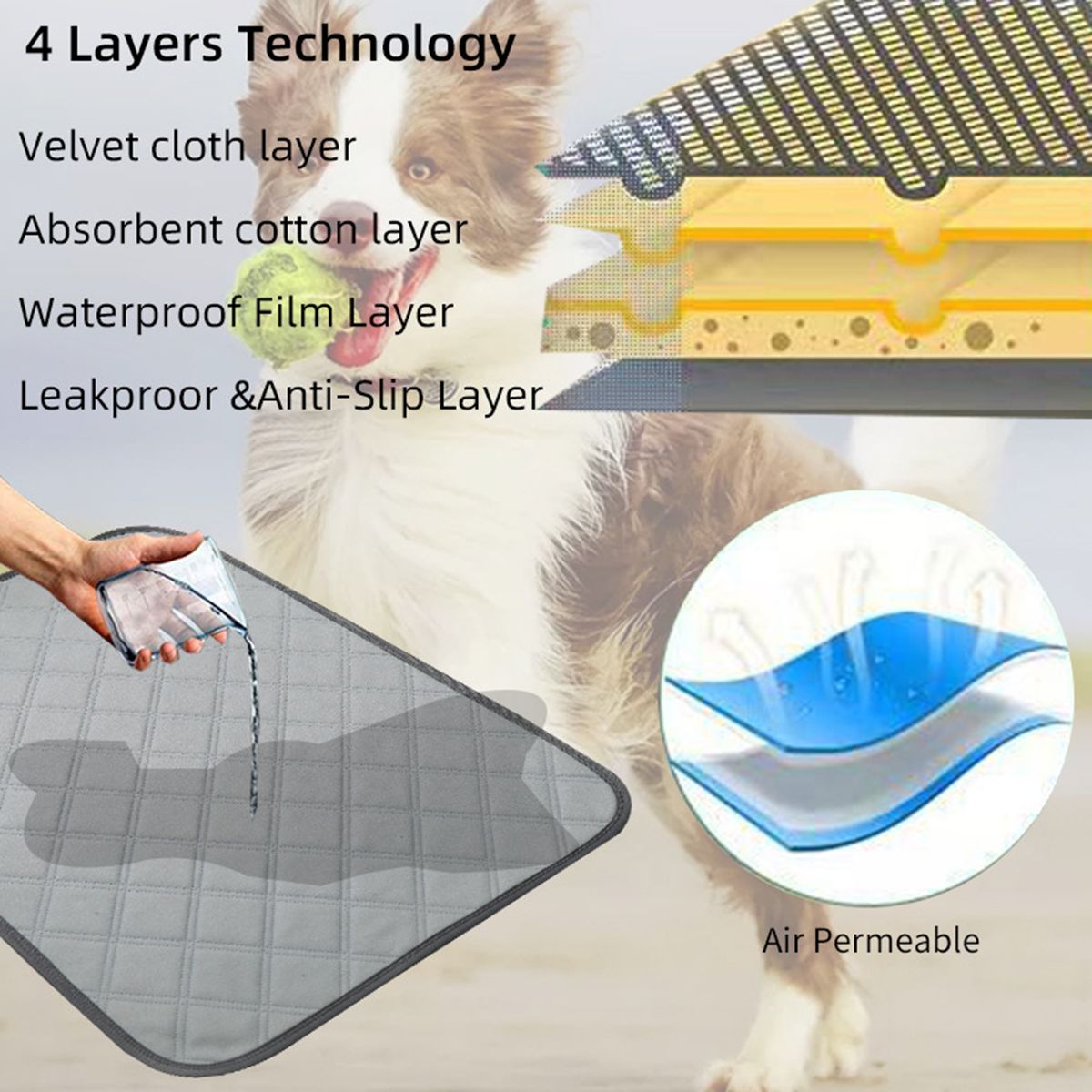 High Water Absorption: 4-layer water absorption and water-proof structure, the surface layer is made of breathable and healthy fabric, skin-friendly material, which makes pets more comfortable. The absorbent material quickly absorbs pet urine. Keep the dog dry all night.