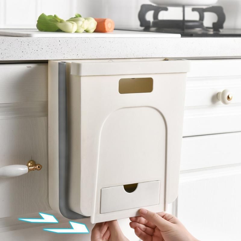 A Must Have for Kitchen: Easy to install, Just attach the folding trash can to any cabinet drawers or doors. When you cooking food, slicing and dicing things, you 't need to open and cabinet door constantly with your wet hands, compared to the trash bin under the sink.