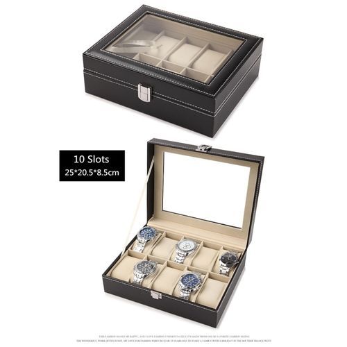CHECK STORE FOR OTHER SLOTS BELOWSupeior PU leather watch display case with exquisite workmanship.