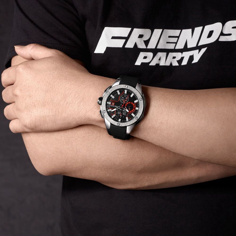 Main Feature:- Time/Calendar/Stopwatch Function(Sub-dial Working) ; - 3ATM/30M Water Resistant(not for shower,swimming and diving);- Hardlex Dial Window;- Quality Alloy Case;- Quality Silicone Watchband;