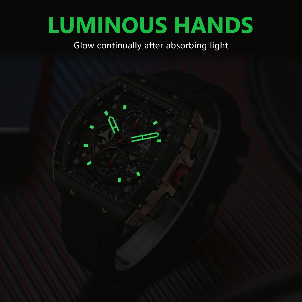 - Day Display and Minutes / Seconds Chronograph ( Working Three Sub-dial);
