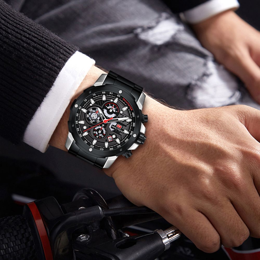 - Day Display and Minutes / Seconds Chronograph ( Working Three Sub-dial);