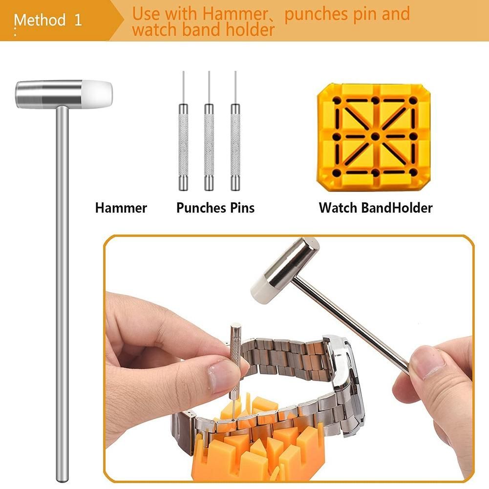 [Multi-function watchband repair] Watch link remover(with extra pin*3) can be directly used to adjust the watchband; the other way is hammer, punches pins (replacement pin, 0.8/0.9/1.0), used with the watchband holder to adjust the length of the strap. Spring bar or screwdrivers can be used to change the strap. At the same time, spring bar *108 is suitable for changing the strap of 0.32-0.99in. you can the tool you like to repair, and enjoy the of different repair methods.
