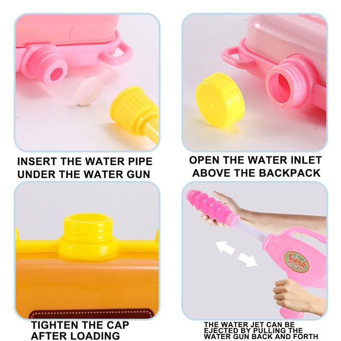 Features: 1. Wide Spurting : Long distan e water spurting range. Even a two-year-old hild an easily spurt the water out of about 3 meters. 2. Durable Water Ba kpa k: We have made improvement to the material of the ba kpa k tank, and it will a ompany your hild through whole of the summer. 3. A ropriate Volume Tank: 1200ml water tank volume. Ba kpa k water blaster, no more refilling. Ideal for water wars and outdoor fun, for toddlers and kids. 4. Adjustable Ba kpa k Strips: Adjustable straps, an be ustomized to omfortably fit all sizes, normally kids and adults an use the ba kpa k. 5. Enjoy Pool Party: Sturdy ba kpa k will store the water and keep the game going at high speed. This powerful toy will satisfy you with its far and on-target.