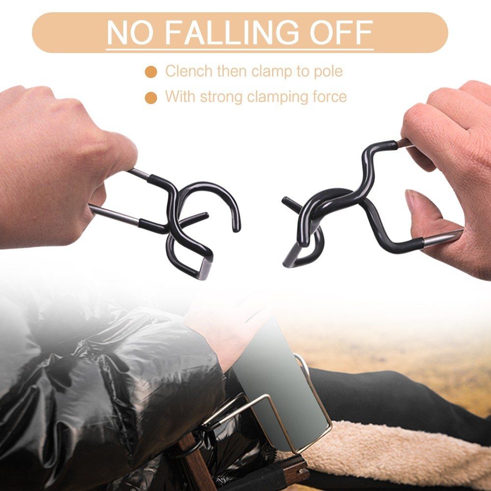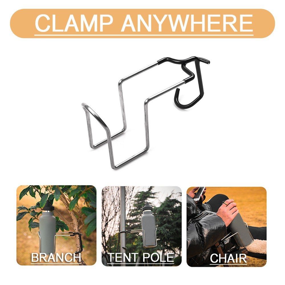 This hanger made from stainless steel is durable to use out of doors. Clamping to the pole, it can help you hold a water bottle or lamp. Just have it to enjoy your outdoor activities with more convenience.