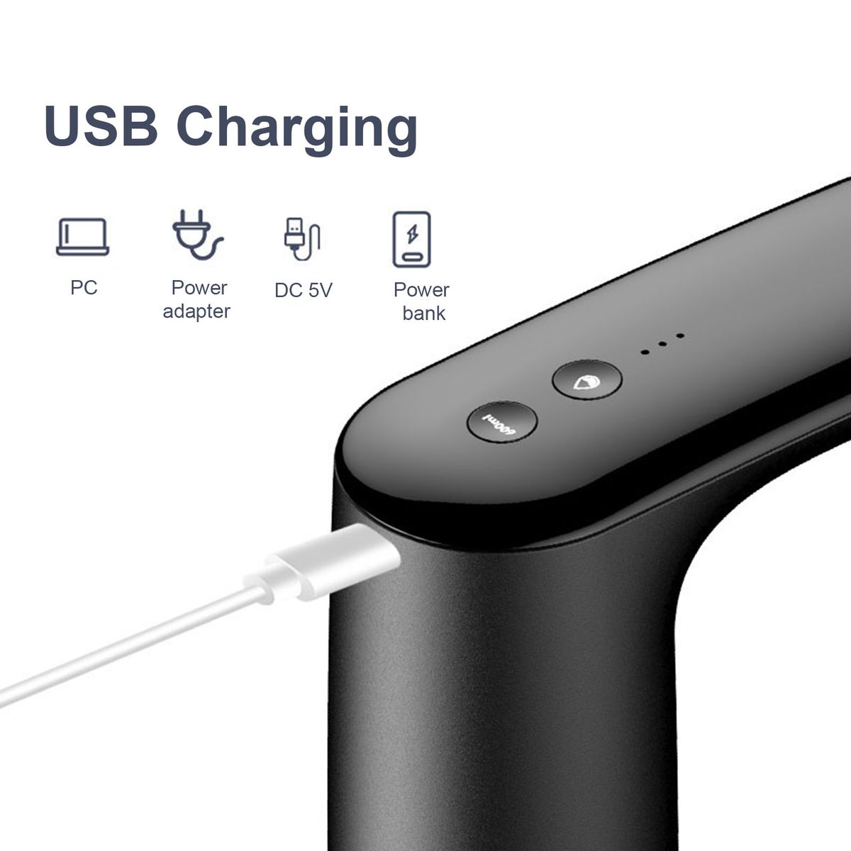 Built-in rechargeable 1200mAh lithium battery for pumping 5-8 bottles of water after fully charged.