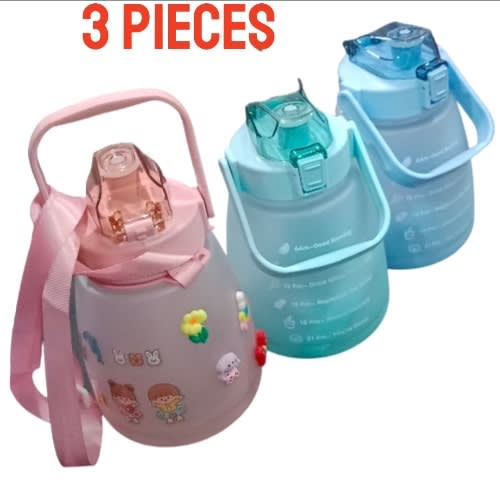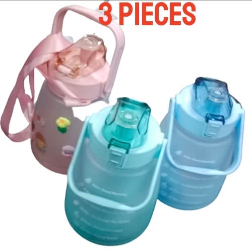 Includes: 1 x 2l bottle 1 x 900ml bottle & 1 x 350ml bottleInspirational QuotesTime MarkersFunctional DesignHigh-quality materials: PlasticBPA Free & Toxin FreeIncludes StrawColours sent at random*Design may differ but functionality will remain the same