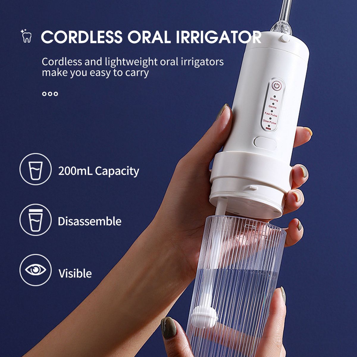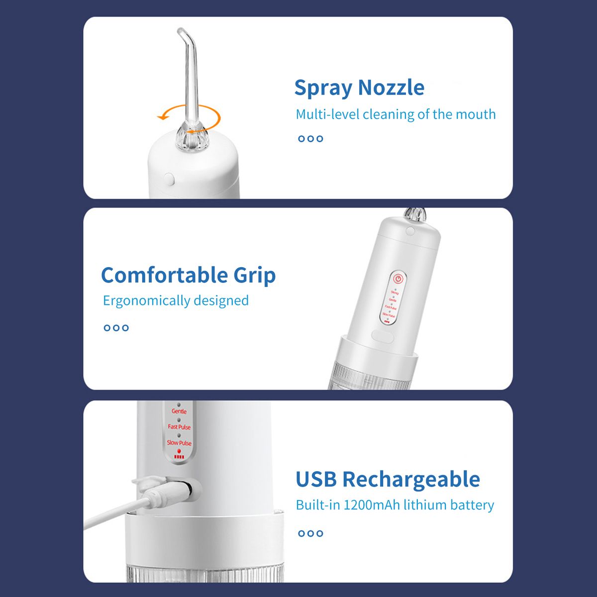The oral irrigator comes with 2 spray nozzles for personal use. Cordless and lightweight oral irrigators make you easy to carry. Whether you are on business or traveling, you can easily meet the needs of oral deeply clean.